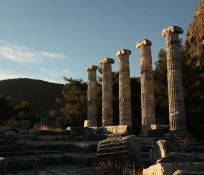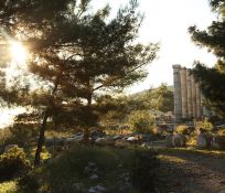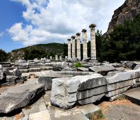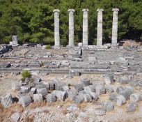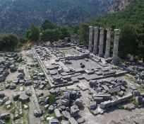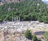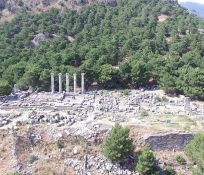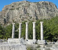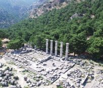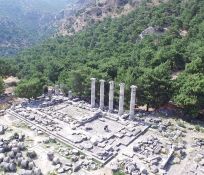 Priene Ancient City is located on the south slope of Mykale (Samsun) Mountain which is in Güllübahçe Neighborhood 15 km. southwest of Söke District. The city was established in the 4th century BC for goddess Athena, and it's one of the important cities with a grid plan. The most important structure is the Temple of Athena which is located in the city centre. In ancient times, in front of the temple there was a statue of Athena made of gold and ivory. Today, part of the altar of the temple is still intact. One of the Seven Sages (Seven Wise Men) Bias lived in Priene, and it's known that during his east campaign Alexander the Great stayed in the city and had the temple of Athena fixed. The city also houses an Egyptian Temple dedicated to Osiris and goddess Isis for the use of traveling merchants from Egypt.